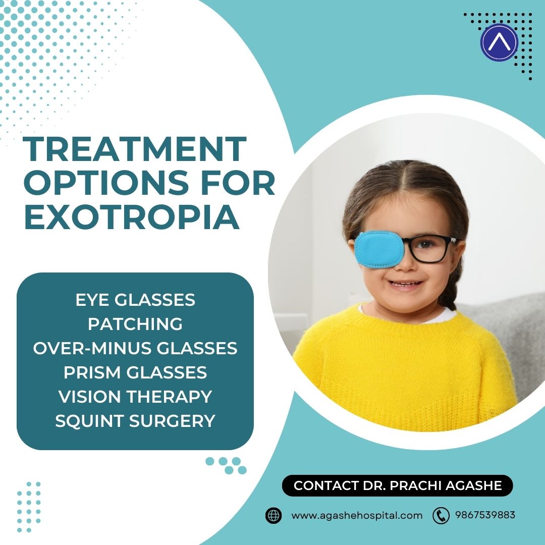 Early diagnosis is the most important part of the treatment of exotropia. If you suspect that your child has exotropia, do get in touch with your nearest squint eye specialist. Dr. Prachi Agashe is a pediatric and adult squint eye specialist at Agashe Hospital. She can be reached via email at contactus@agashehospital.com or via phone at 9867539883.