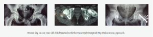 Severe slip in a 11 year old child treated with the Ganz Safe Surgical Hip Dislocation approach.